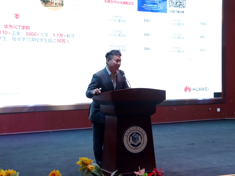 大数据学院杨庆虎院长为活动致辞。他代表学校向在本次HCIA-AI认证中取得优异成绩的100余名师生表示祝贺,并向在此次认证活动中辛勤付出的泰克教育老师和支持学院发展的华为技术有限公司等合作伙伴表示衷心感谢。杨庆虎指出,在数字化、智能化浪潮席卷全球的今天,掌握前沿信息技术是青年学子赢得未来、服务社会的关键。杨庆虎勉励全体学生以获奖学生为榜样,树立远大志向,锤炼过硬本领,将个人成长融入国家数字经济发展的宏伟蓝图。