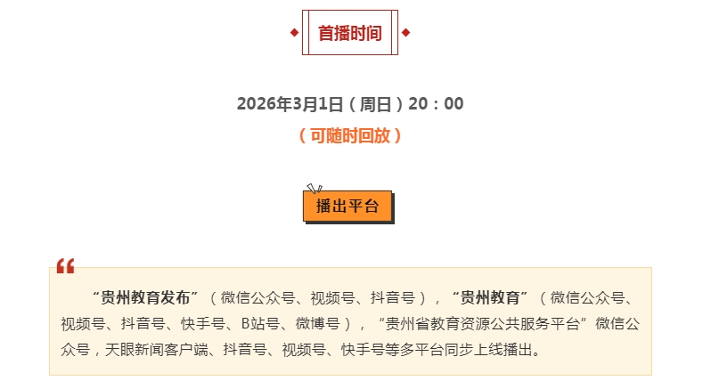 3月1日晚8点,贵州教育大讲堂《山河间的青春刻度》,让我们一同打开这份跨越百年的青春答卷。